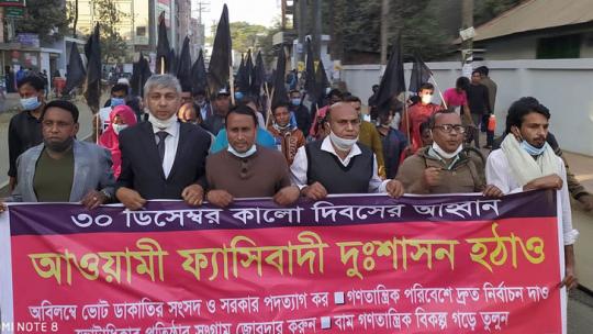 সিলেটে বাম জোটের কালো পতাকা মিছিল অনুষ্ঠিত