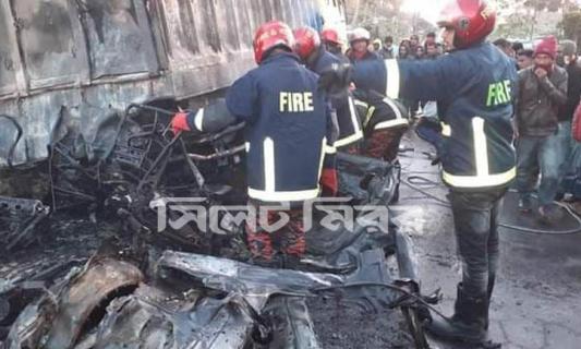 গোলাপগঞ্জে ট্রাকের ধাক্কায় মাইক্রোবাসের সিলিন্ডার বিস্ফোরণে নিহত ৩