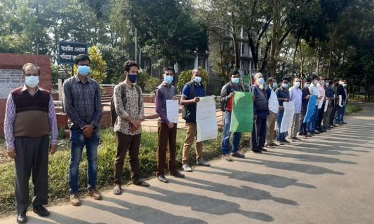 বঙ্গবন্ধুর ভাস্কর্য ভাঙচুরের প্রতিবাদে শাবিতে মানববন্ধন