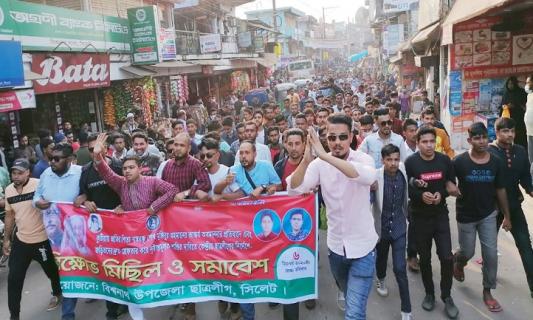 বঙ্গবন্ধুর ভাস্কর্য ভাংচুরের প্রতিবাদে বিশ্বনাথে বিক্ষোভ