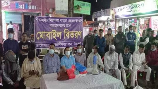 ওসমানীনগরে নৈশপ্রহরীদের মাঝে মোবাইল বিতরণ