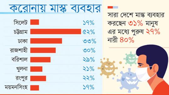 দেশের মধ্যে মাস্কের ব্যবহার সবচেয়ে কম সিলেট বিভাগে