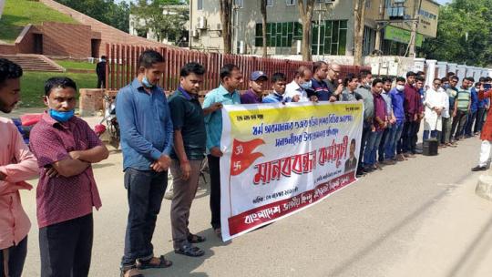 সাম্প্রদায়িক হামলার প্রতিবাদে সিলেটে মানববন্ধন