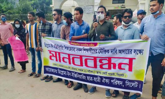 ৮দফা দাবিতে ডিপ্লোমা শিক্ষার্থীদের মানববন্ধন