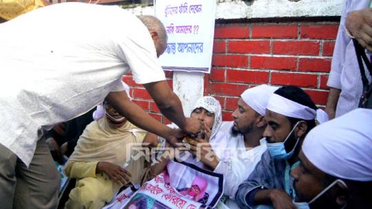 বন্দর ফাঁড়ির সামনে অনশনে রায়হানের মা