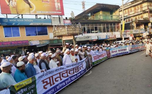 জকিগঞ্জে ক্বওমী মাদরাসা ঐক্য পরিষদের মানববন্ধন