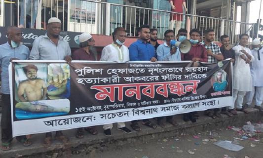 রায়হান হত্যাকারীর ফাঁসির দাবিতে বিশ্বনাথে মানববন্ধন