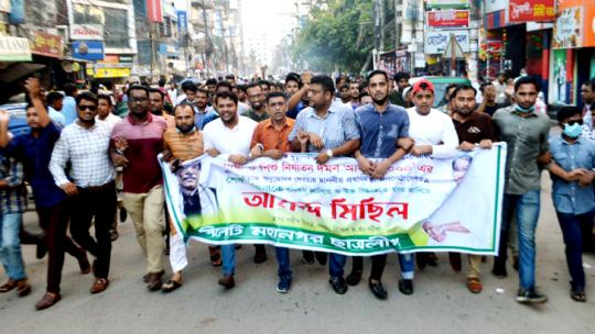 নগর ছাত্রলীগের আনন্দ মিছিল