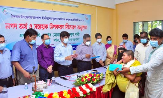 বিশ্বনাথে প্রতিবন্ধীদের মাঝে অর্থ ও সহায়ক উপকরণ বিতরণ