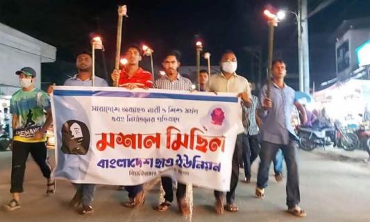 ধর্ষকদের বিচারের দাবিতে বিয়ানীবাজারে ছাত্র ইউনিয়নের মশাল মিছিল