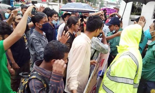ছাত্রজোটের অবস্থান কর্মসূচিতে পুলিশের বাধা