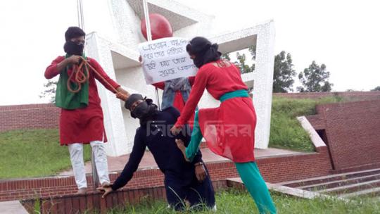 ধর্ষককে প্রতীকী ফাঁসি দিল ‘ত্রিরত্ন’