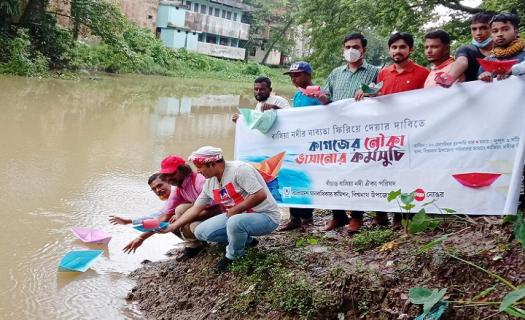 বিশ্বনাথে নদীতে কাগজের নৌকা ভাসিয়ে প্রতিবাদ