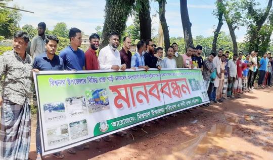 সড়ক সংস্কারের দাবিতে বিশ্বনাথে মানববন্ধন