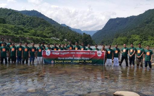 অবৈধ অনুপ্রবেশ রোধে গোয়াইনঘাটে প্রতীকী মানব দেয়াল