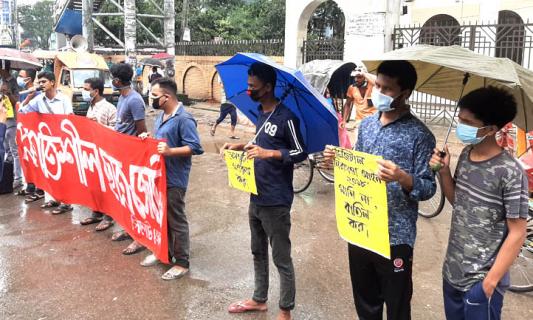 তিন দফা দাবিতে সিলেটে প্রগতিশীল ছাত্র জোট বিক্ষোভ