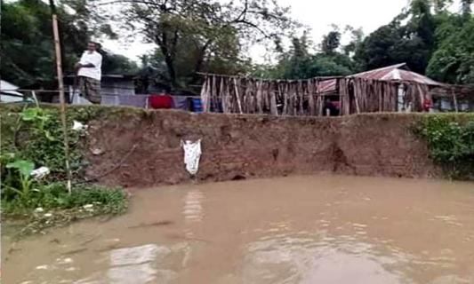 কানাইঘাটে ৩টি স্থানে নদী ভাঙন, বালুর বস্তা ফেলে প্রতিরোধের চেষ্টা