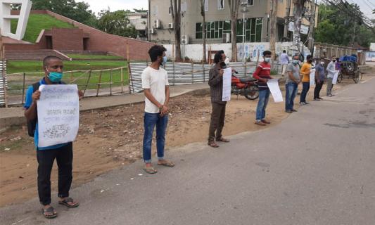 শিক্ষাখাতে বরাদ্দ বৃদ্ধির দাবিতে সিলেটে ছাত্র ইউনিয়নের মানববন্ধন