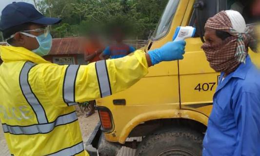 কোম্পানীগঞ্জের প্রবেশে থার্মাল স্ক্যানার দিয়ে পরীক্ষা