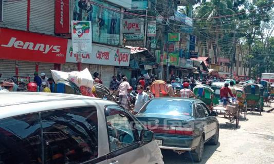 সিলেটে লকডাউন না মেনে রাস্তায় মানুষের ভিড়