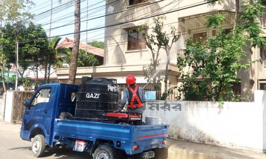 লকডাউন হাউজিং এস্টেটে জীবাণুনাশক ছিটিয়েছে সিসিক