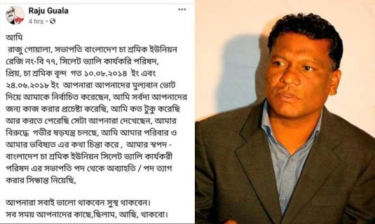 চা শ্রমিক ইউনিয়ন নেতার পদত্যাগের ঘোষণা