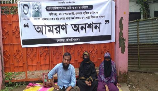 কুলাউড়ায় আমরণ অনশনে ব্যবসায়ী পরিবার