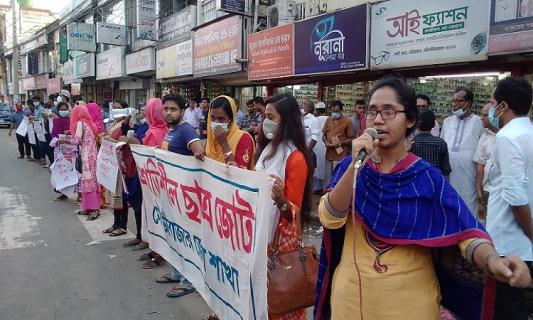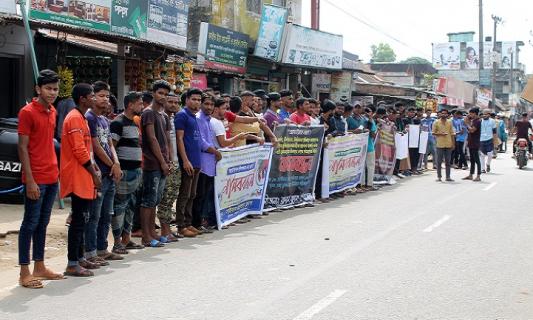 মৌলভীবাজারে ছাত্রলীগের হামলার প্রতিবাদে মানববন্ধন