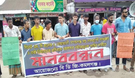 ধর্ষণ, নির্যাতনের প্রতিবাদে কমলগঞ্জে মানববন্ধন