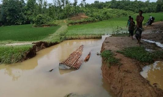বড়লেখায় সড়কে ভাঙন, ভেসে গেছে কালভার্ট