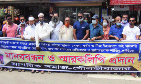 মৌলভীবাজারে ধর্ষণের প্রতিবাদে মানববন্ধন, বিচার দাবি