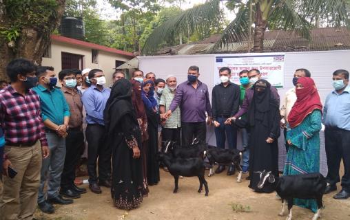 বড়লেখায় নারী ও কিশোরীদের মাঝে ছাগল বিতরণ