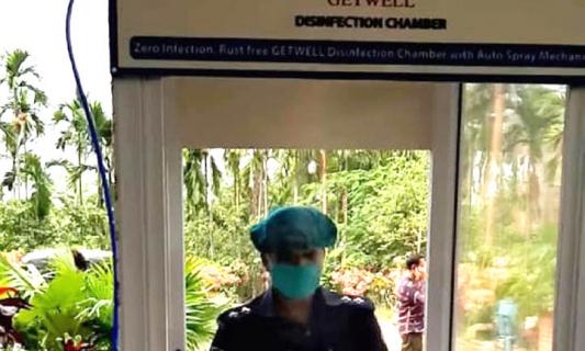 বড়লেখা থানায় জীবাণুনাশক টানেল স্থাপন