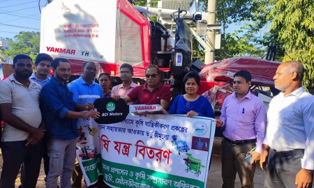 জুড়ীতে কম্বাইন হারভেস্টার মেশিন বিতরণ