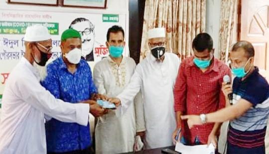 ইমাম ও মোয়াজ্জিনদের ঈদ উপহার দিল কমলগঞ্জ পৌরসভা