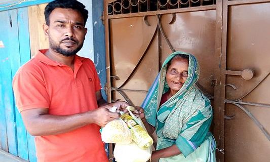 বড়লেখায় কর্মহীনদের ঘরে খাবার দিলেন ওসি