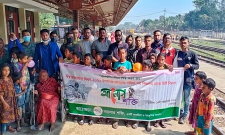 শ্রীমঙ্গলে সুবিধাবঞ্চিত শিশুদের মধ্যে খাবার, মাস্ক ও বেলুন বিতরণ