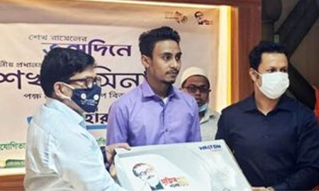 ল্যাপটপ উপহার পেলেন শ্রীমঙ্গলের রাজু