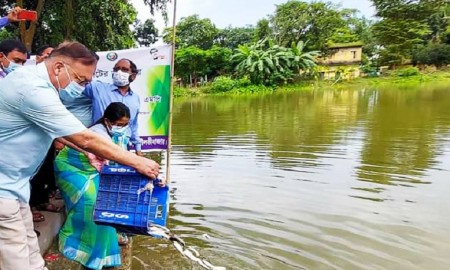 কমলগঞ্জে মাছের পোনা অবমুক্ত