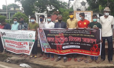 হিন্দুদের মন্দির ও বাড়িঘর ভাঙচুর, কমলগঞ্জে প্রতিবাদ