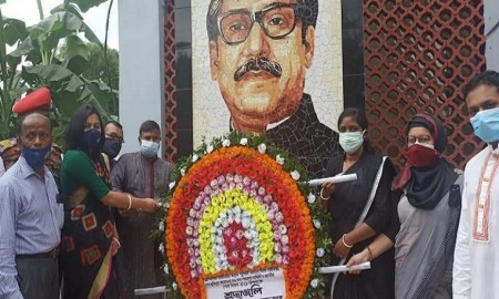 মৌলভীবাজারে বঙ্গবন্ধু ম্যুরালে প্রশাসন, জনসাধারণের শ্রদ্ধা