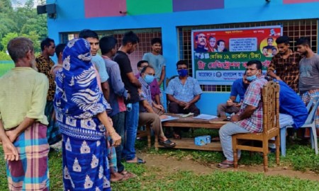 কমলগঞ্জে ভ্যাকসিনের নিবন্ধন করে দিচ্ছে স্বেচ্ছাসেবক লীগ