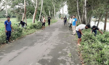 বড়লেখায় স্বেচ্ছাশ্রমে পরিষ্কার হলো সড়কের পাশের ঝোপ-ঝাড়