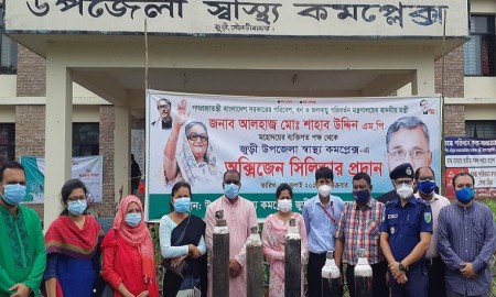 জুড়ীতে অক্সিজেন সিলিন্ডার দিলেন পরিবেশমন্ত্রী