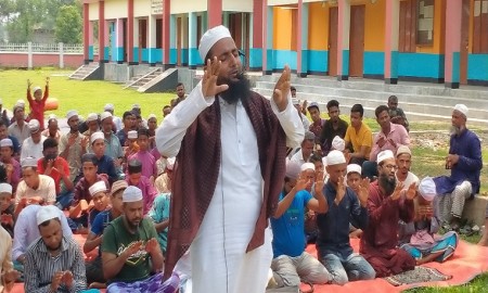 কমলগঞ্জে বৃষ্টির জন্য খোলা মাঠে মোনাজাত