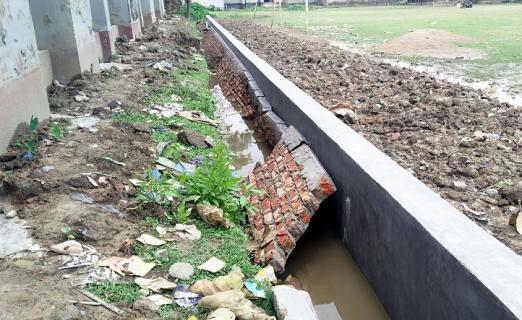 নির্মাণের ১৫ দিনের মাথায় ভাঙল ড্রেনের দেয়াল