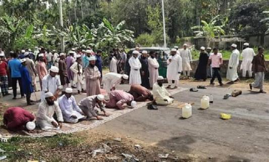 মৌলভীবাজারে মহাসড়ক অবরোধ করে নামাজ আদায়