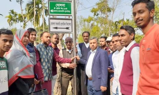 বড়লেখায় রোড সাইন স্থাপন ও গুণীজন সংবর্ধনা