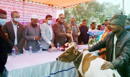 গরু ও দানাদার খাদ্য পেলেন কমলগঞ্জের ১৩৪ জন