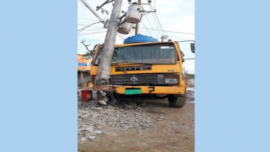 রাজনগরে ট্রাকের ধাক্কায় ভেঙ্গে গেল বৈদ্যুতিক খুঁটি